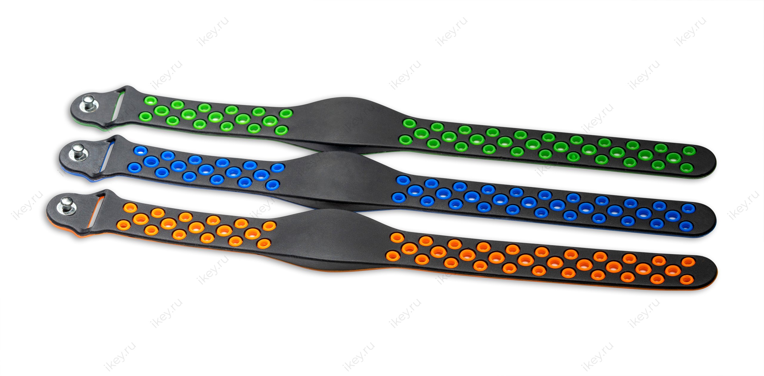 Браслет из эластичного и прочного силикона, влагонепроницаемое исполнение позволяет использовать его в аквапарках и бассейнах.
