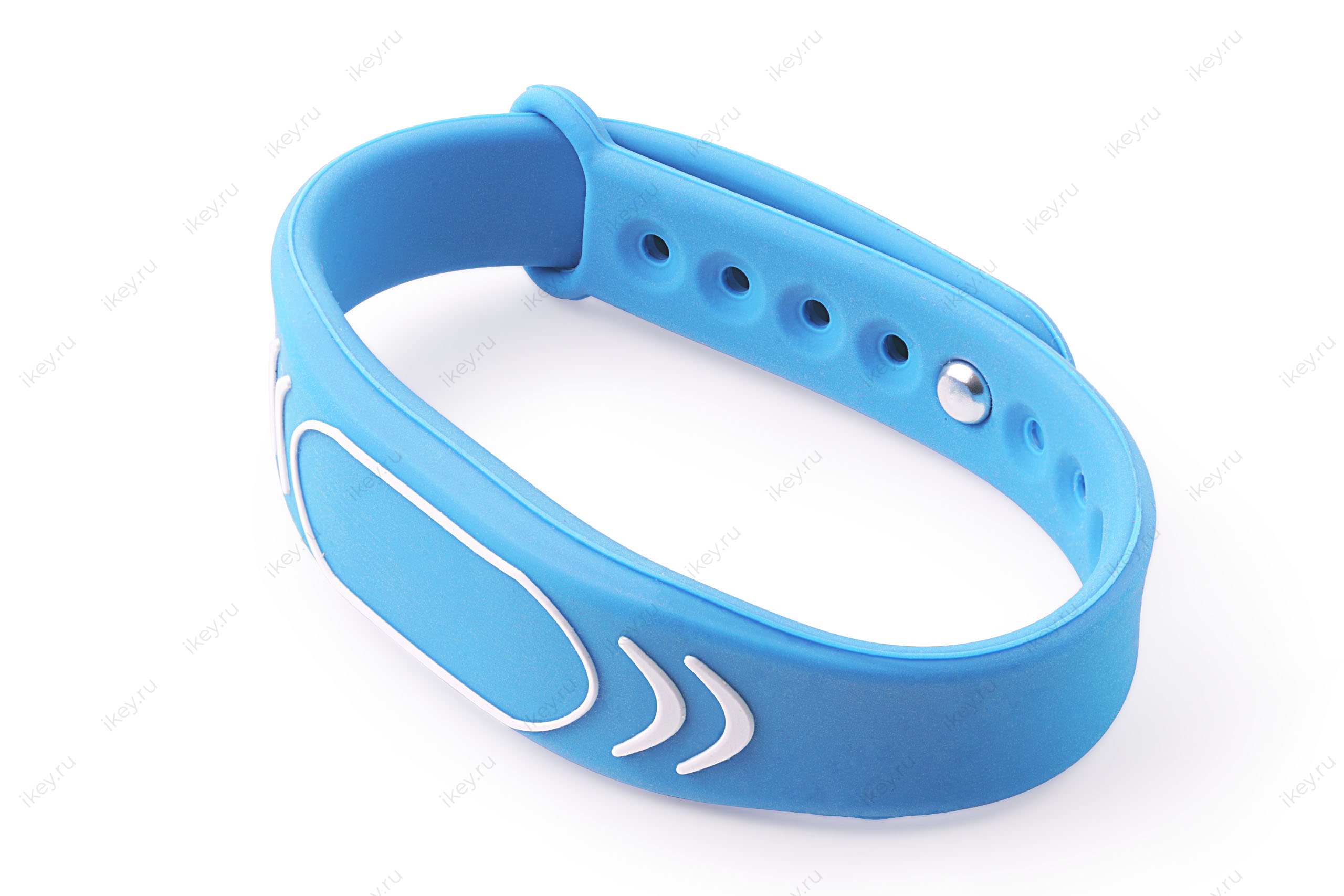 Браслет из эластичного и прочного силикона, влагонепроницаемое исполнение позволяет использовать его в аквапарках и бассейнах.
