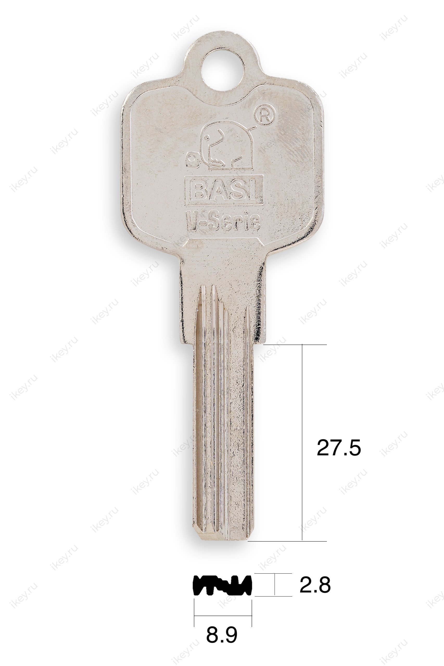 Заготовка вертикального перфорированного (луночного) ключа Basi V55 оригинальный.