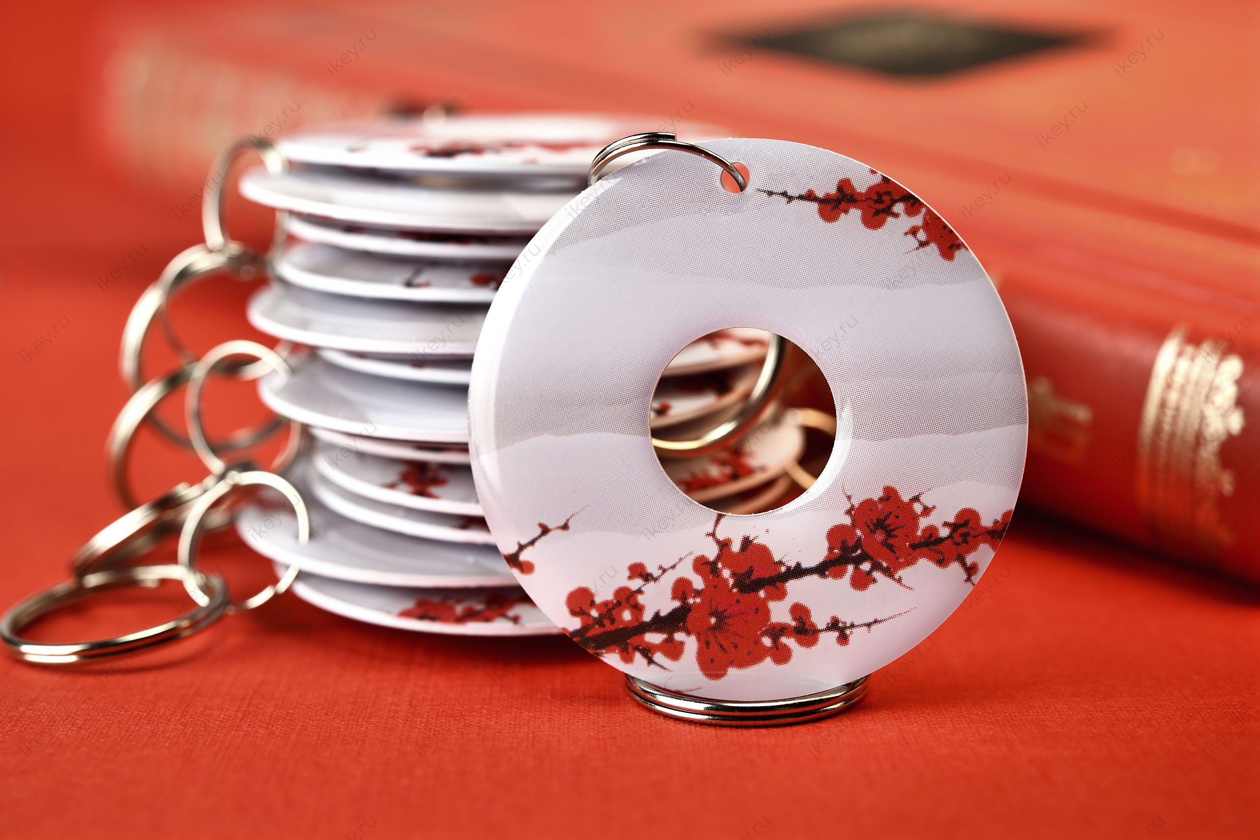 Бесконтактная заготовка для создания копий формата EM-Marin, HID, Indala в виде брелока с эпоксидным слоем и рисунком цветущей сакуры.