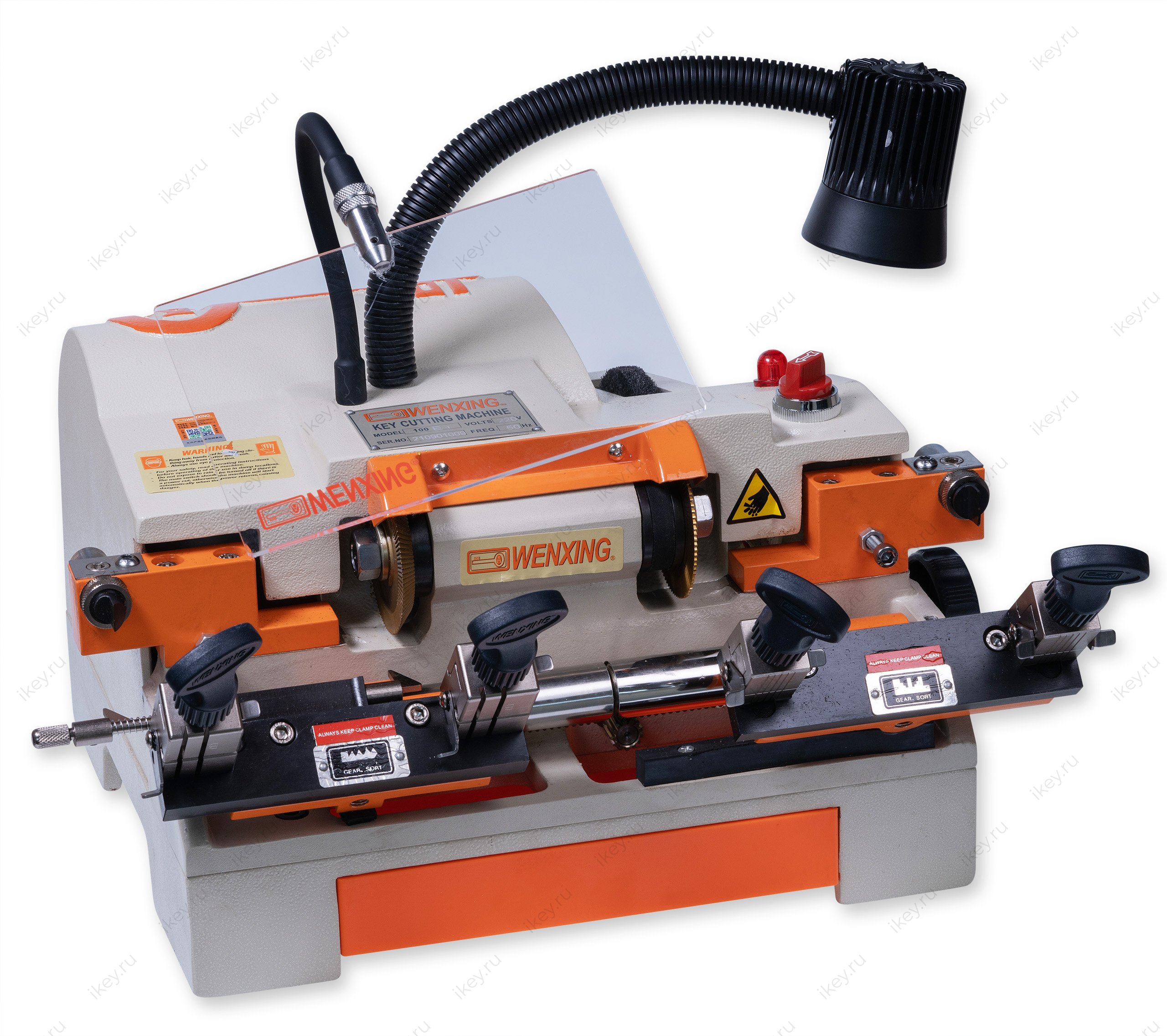 Wenxing 100E1 - одна из самых распространенных моделей в серии универсальных станков для изготовления ключей. Надёжный, достаточно легок и прост в эксплуатации, система регулировки упрощает и облегчает работу с широким диапазоном конфигураций пропилов.